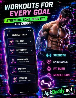 Users can choose from different workout programs based on their fitness goals, whether it’s muscle gain, fat loss, or strength building. The app also tracks your progress, calories burned, and workout history to help you stay motivated.